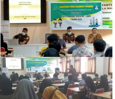 Kendari ,(Humas MTsN 1)--- Kejaksaan tinggi Sultra melalui bidang intelejen menggelar kegiataan penyuluhan hukum Jaksa Masuk Sekolah ( JSM) kepada 40 siswa Madrasah Tsanawiyah Negeri(MTsN) 1 Kendari yang terdiri dari para pengurus osis dan perwakilan ketua kelas, selasa 12 April 2021 bertempat di aula ma ...