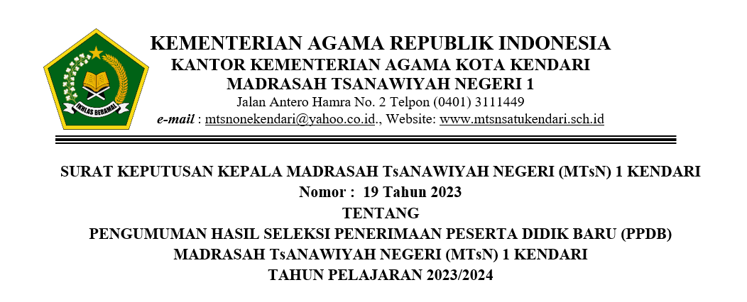 Pengumuman Hasil Seleksi PPDB MTsN 1 Kendari Tahun Pelajaran 2023/2024