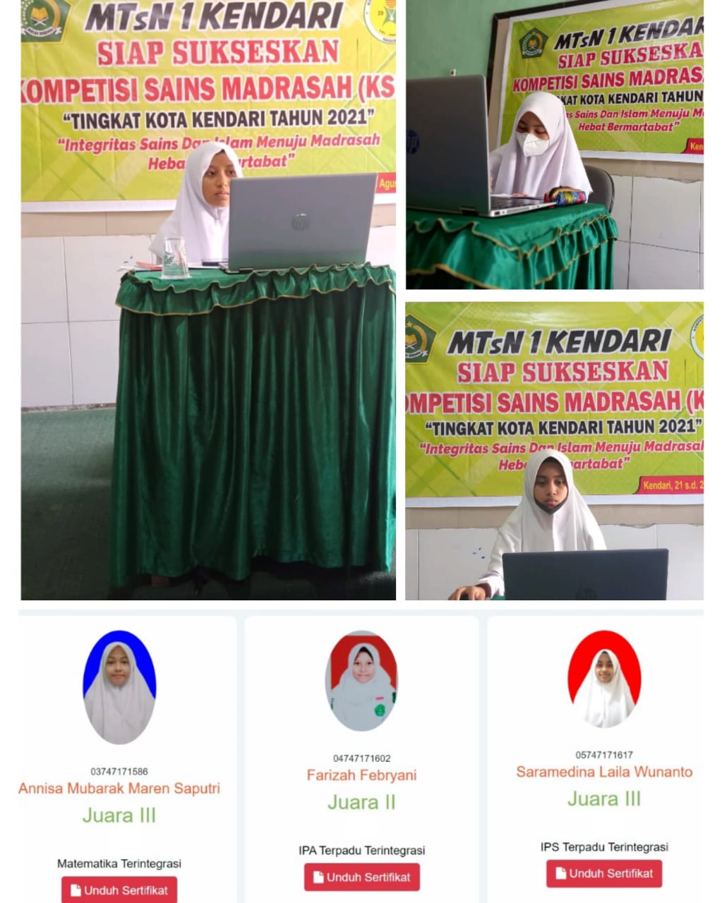 Kendari,(Humas MTsN 1) — Tiga siswa Madrasah Tsnawiyah Negeri(MTsN) 1 Kendari yang dinyatakan lolos pada ajang Kompetisi Sains Madrasah (KSM) tingkat Kota Kendari siap melaju pada tingkat provinsi.