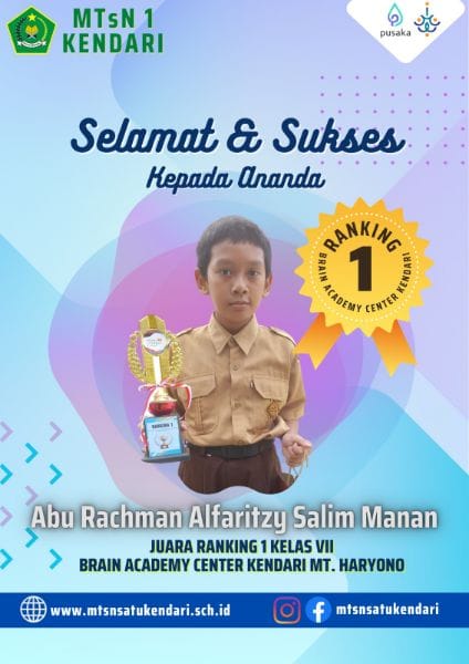 Siswa MTs N 1 Kendari Raih Juara 1 Lomba Rengking Satu Yang diadakan Oleh Brain Academy Center Kendari